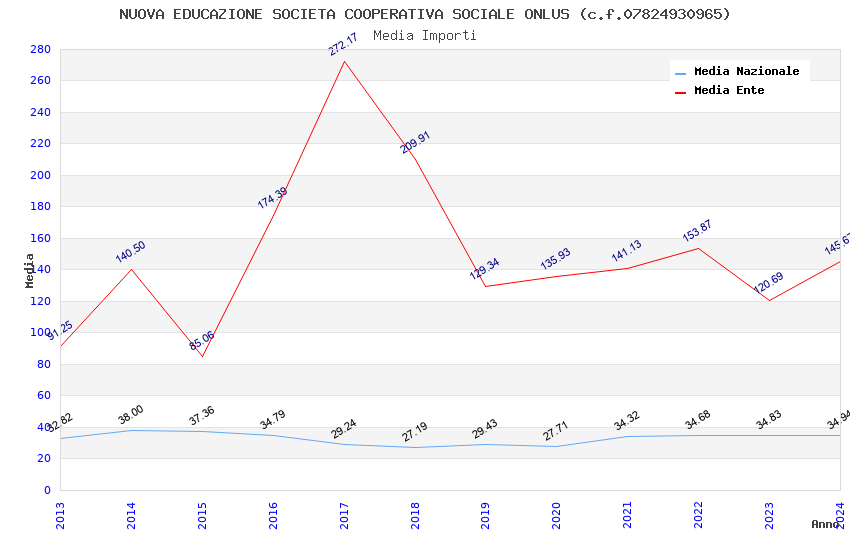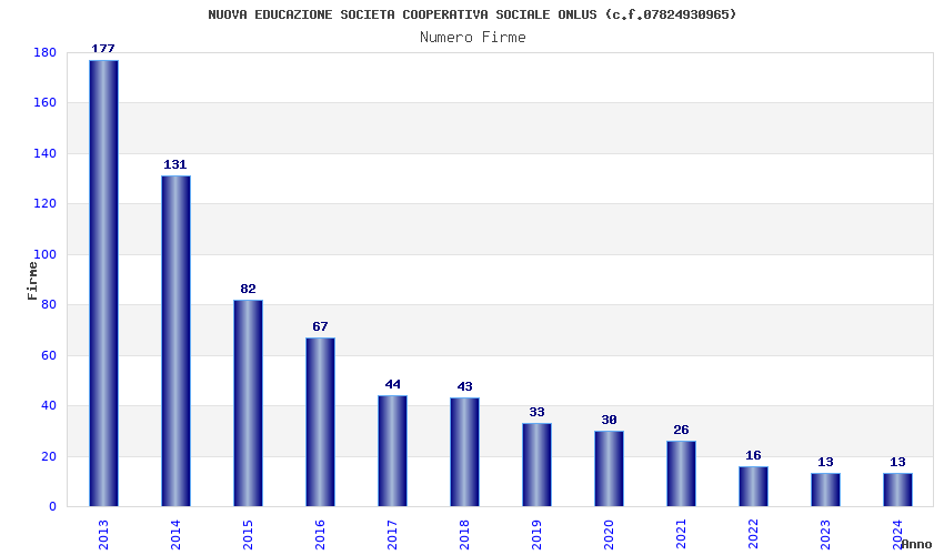 | Anno | Firme | Importi | Media | Naz. | Reg. | Prov. | Comu. |