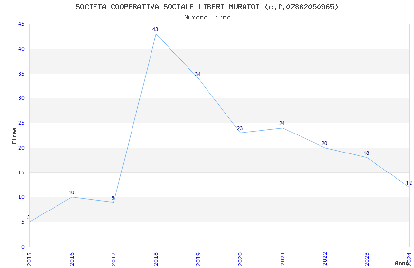 | 2018 | 43 | 768,87 | 17,88 | 39.029 | 8.227 | 207 | 6 |