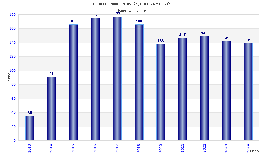 | Anno | Firme | Importi | Media | Naz. | Reg. | Prov. | Comu. |
