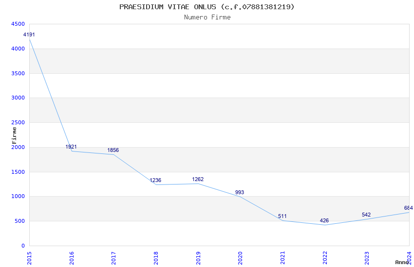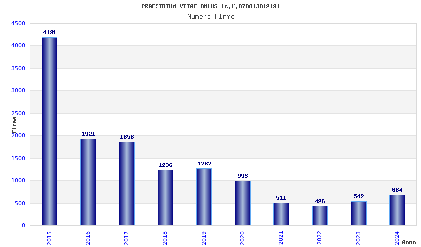 | Anno | Firme | Importi | Media | Naz. | Reg. | Prov. | Comu. |