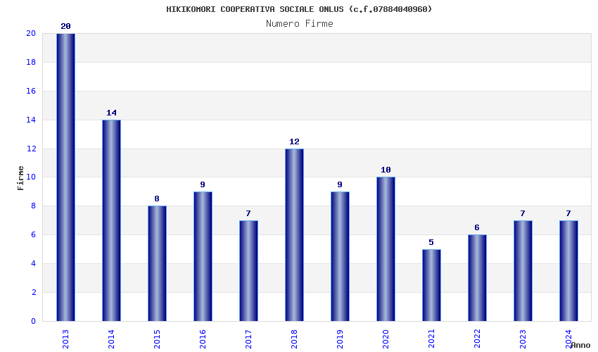 | Anno | Firme | Importi | Media | Naz. | Reg. | Prov. | Comu. |