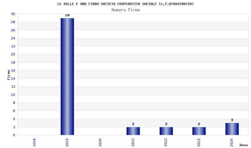 | Anno | Firme | Importi | Media | Naz. | Reg. | Prov. | Comu. |