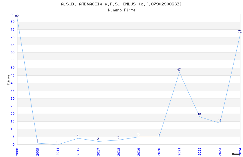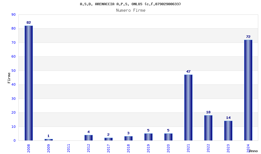 | Anno | Firme | Importi | Media | Naz. | Reg. | Prov. | Comu. |