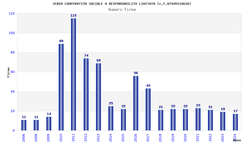 | 2011 | 115 | 2.160,65 | 18,79 | 14.185 | 748 | 381 | 197 |