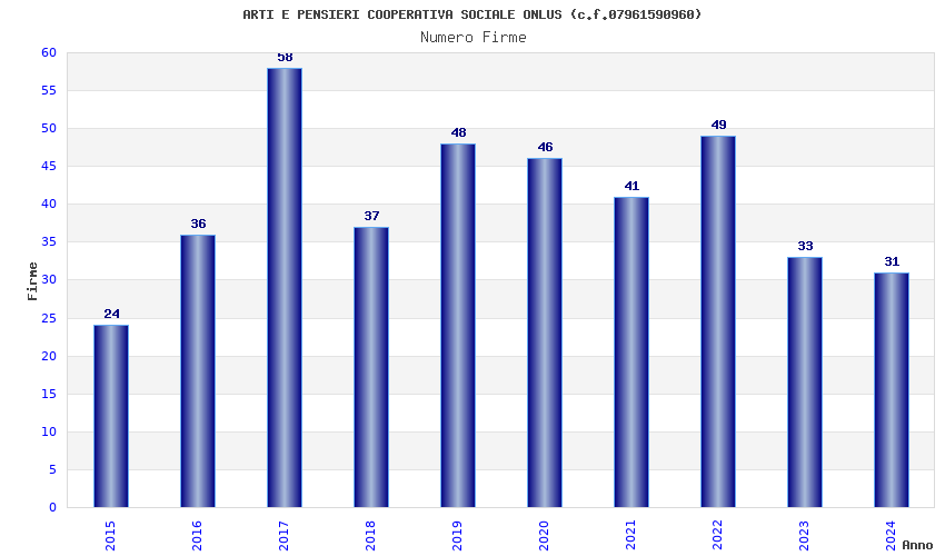 | Anno | Firme | Importi | Media | Naz. | Reg. | Prov. | Comu. |