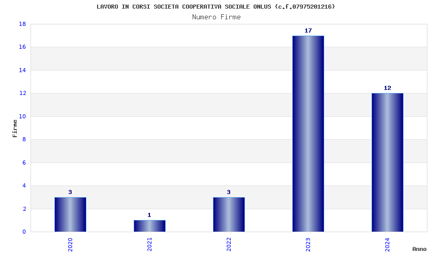 | Anno | Firme | Importi | Media | Naz. | Reg. | Prov. | Comu. |