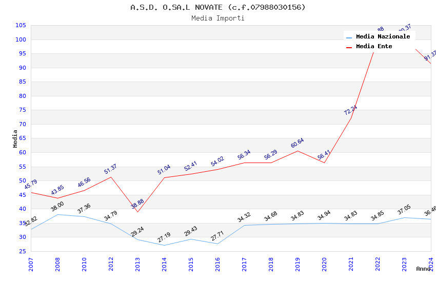| Anno | Firme | Importi | Media | Naz. | Reg. | Prov. | Comu. |