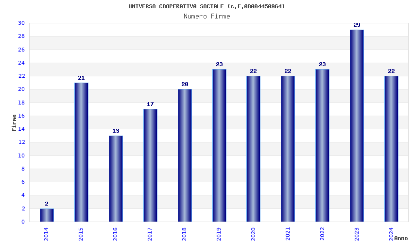 | Anno | Firme | Importi | Media | Naz. | Reg. | Prov. | Comu. |