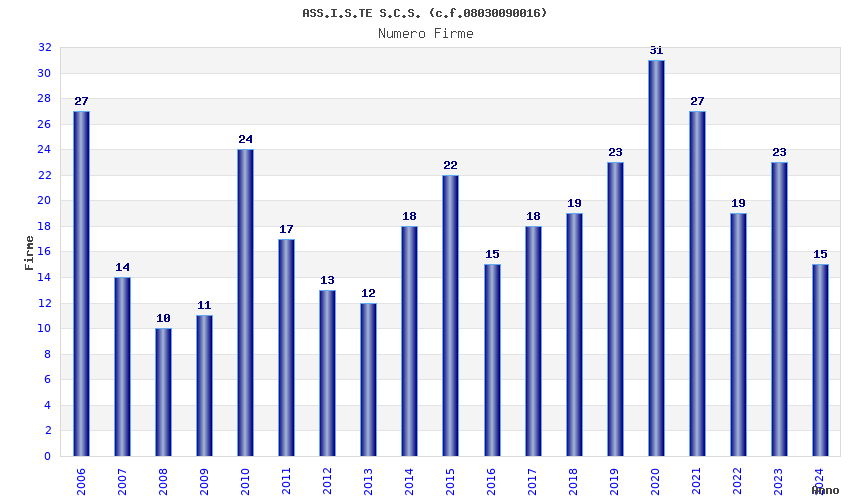 Anno Firme Importi Media Naz. Reg. Prov. Comu.