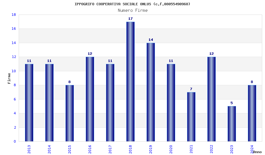 | Anno | Firme | Importi | Media | Naz. | Reg. | Prov. | Comu. |