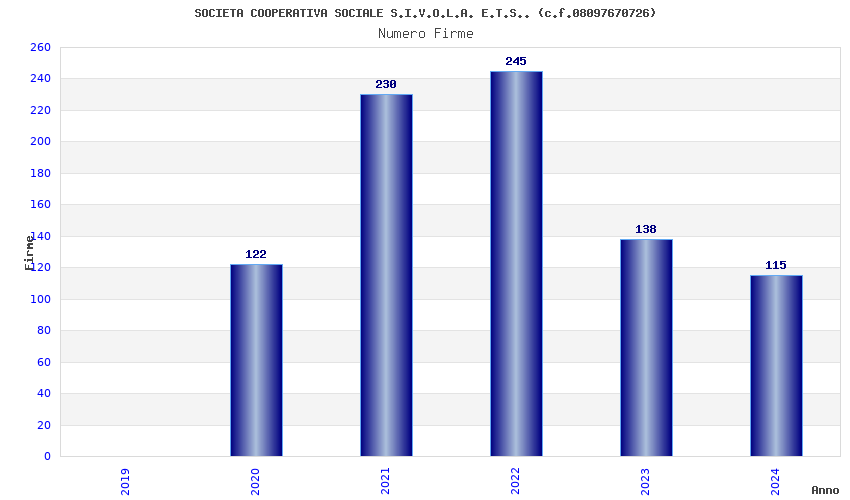 | Anno | Firme | Importi | Media | Naz. | Reg. | Prov. | Comu. |