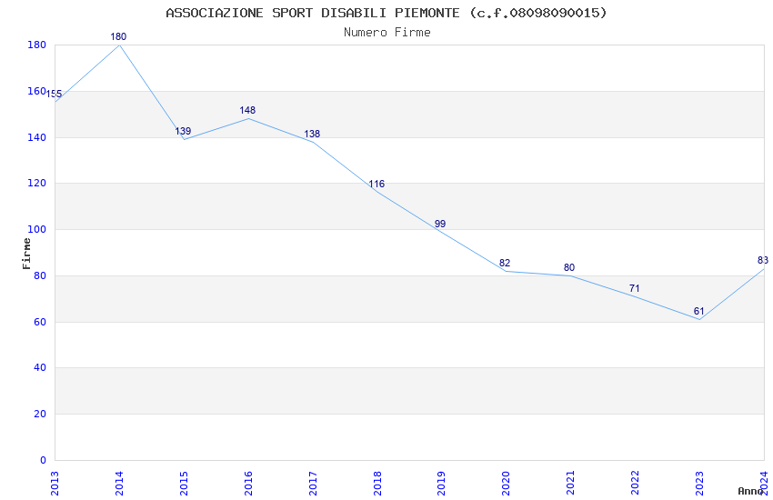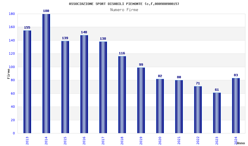 | Anno | Firme | Importi | Media | Naz. | Reg. | Prov. | Comu. |