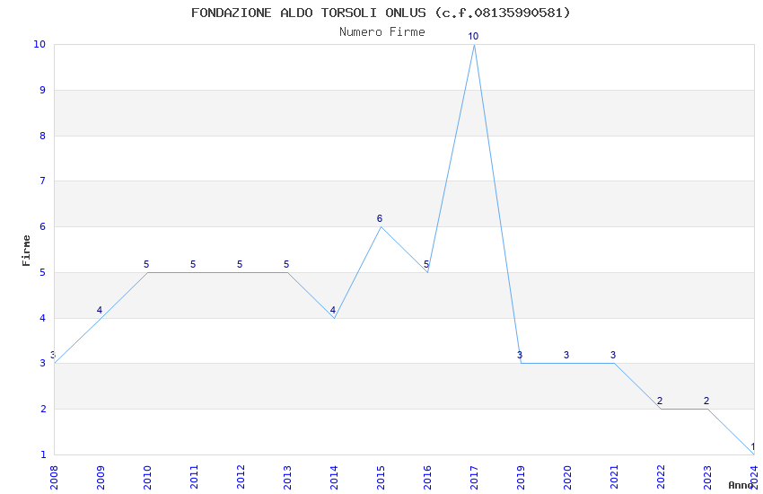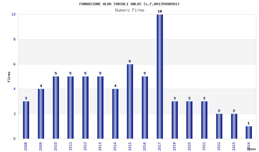 | Anno | Firme | Importi | Media | Naz. | Reg. | Prov. | Comu. |