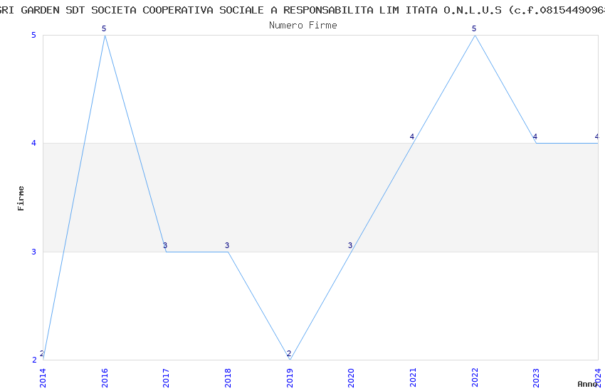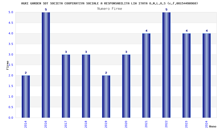 | Anno | Firme | Importi | Media | Naz. | Reg. | Prov. | Comu. |