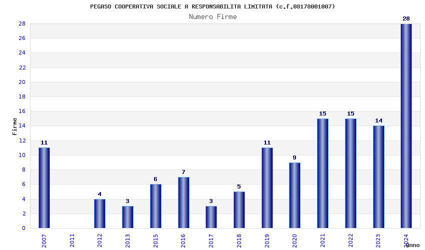 | Anno | Firme | Importi | Media | Naz. | Reg. | Prov. | Comu. |