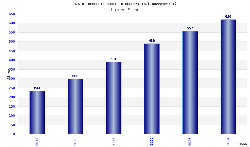 | Anno | Firme | Importi | Media | Naz. | Reg. | Prov. | Comu. |