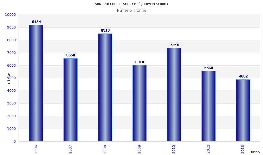 | Anno | Firme | Importi | Media | Naz. | Reg. | Prov. | Comu. |