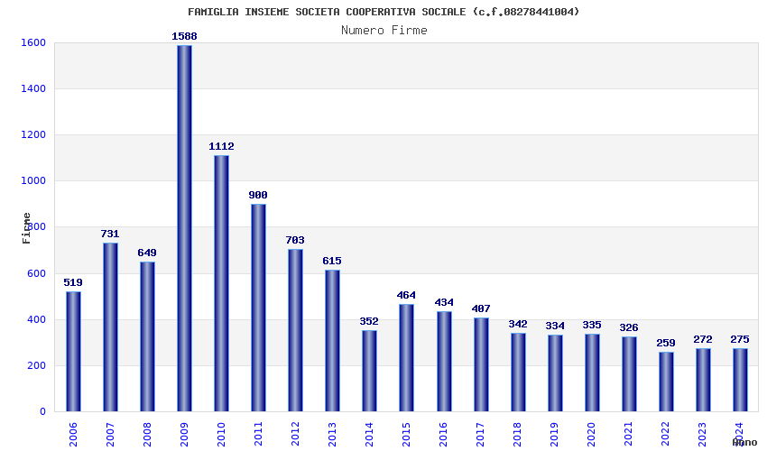| Anno | Firme | Importi | Media | Naz. | Reg. | Prov. | Comu. |