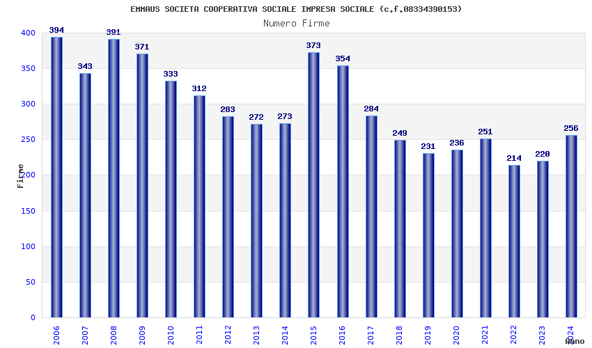 | Anno | Firme | Importi | Media | Naz. | Reg. | Prov. | Comu. |
