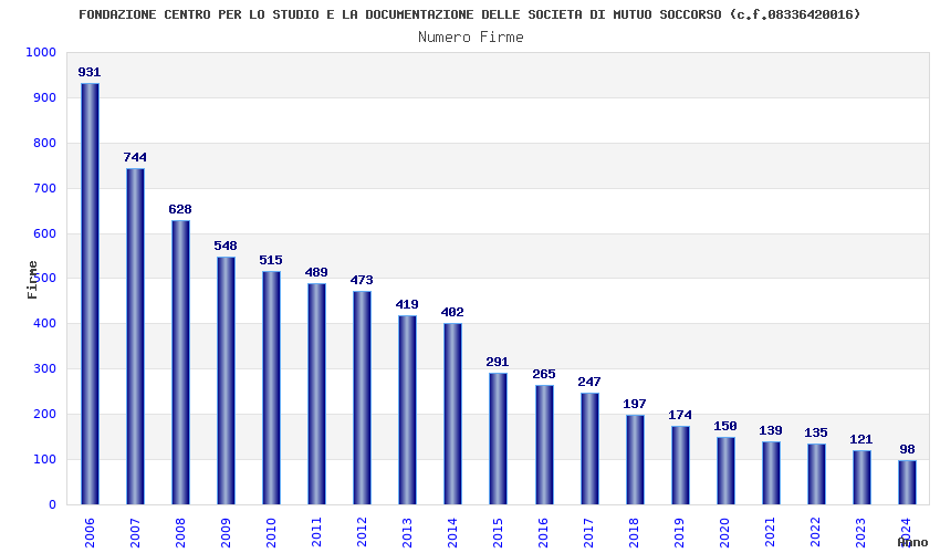 | Anno | Firme | Importi | Media | Naz. | Reg. | Prov. | Comu. |