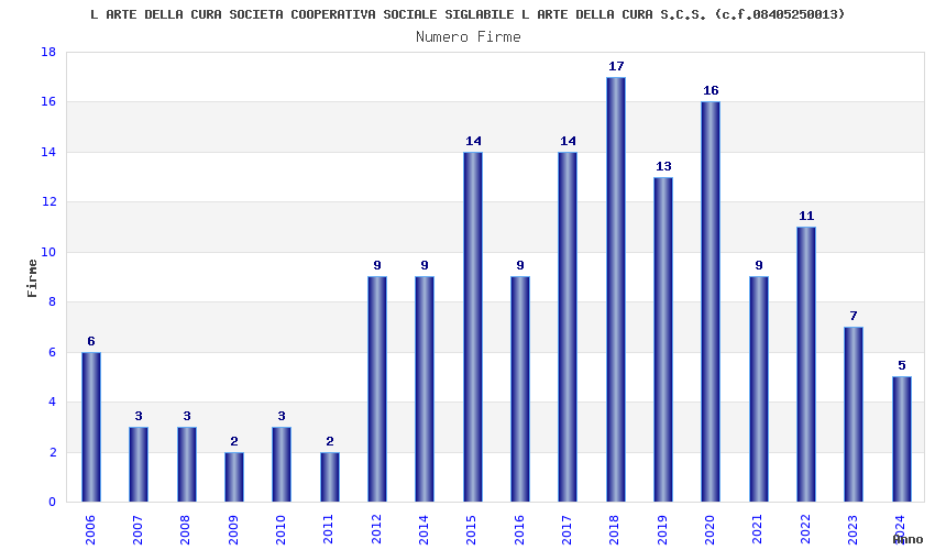 | Anno | Firme | Importi | Media | Naz. | Reg. | Prov. | Comu. |