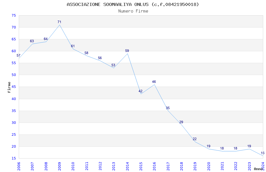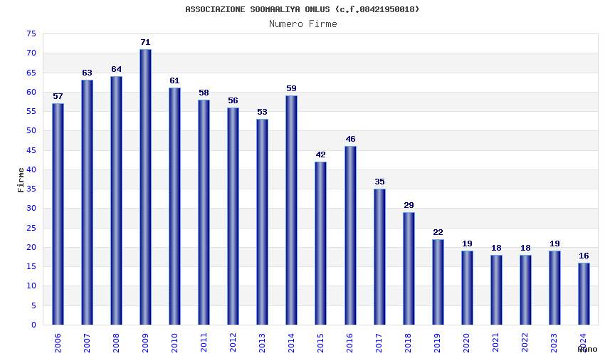 | Anno | Firme | Importi | Media | Naz. | Reg. | Prov. | Comu. |