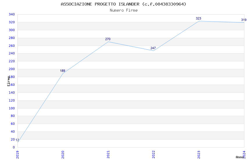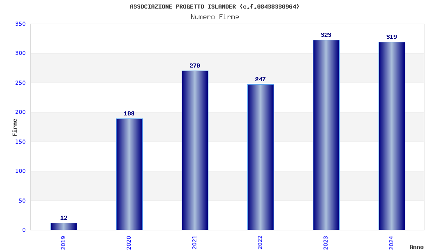 | Anno | Firme | Importi | Media | Naz. | Reg. | Prov. | Comu. |