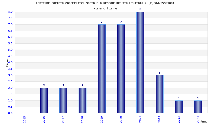 | Anno | Firme | Importi | Media | Naz. | Reg. | Prov. | Comu. |