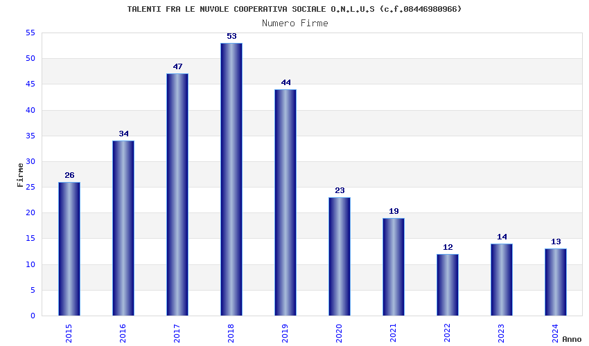 | Anno | Firme | Importi | Media | Naz. | Reg. | Prov. | Comu. |