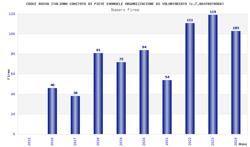 | 2024 | 103 | 2.612,91 | 25,37 | 19.531 | 4.198 | 1.559 | 8 |