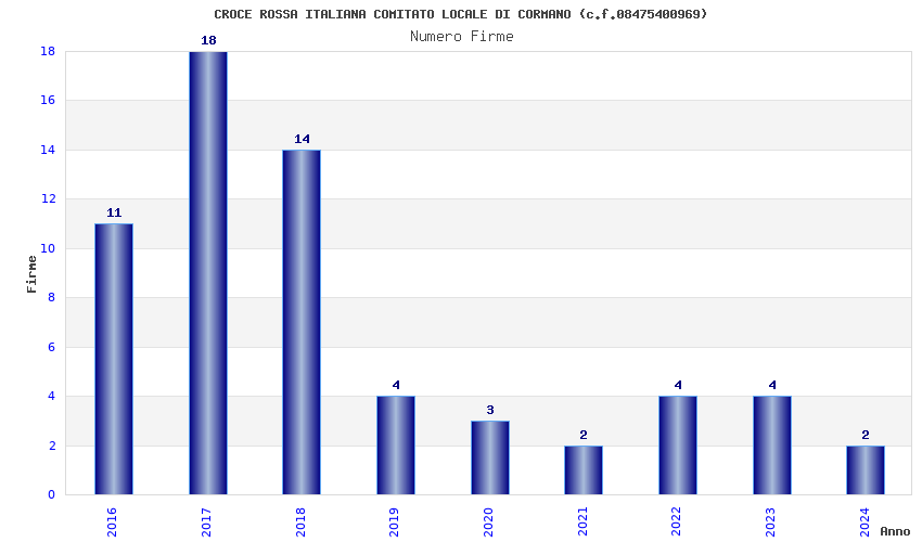 | Anno | Firme | Importi | Media | Naz. | Reg. | Prov. | Comu. |