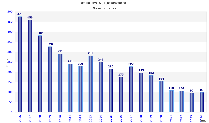 | Anno | Firme | Importi | Media | Naz. | Reg. | Prov. | Comu. |