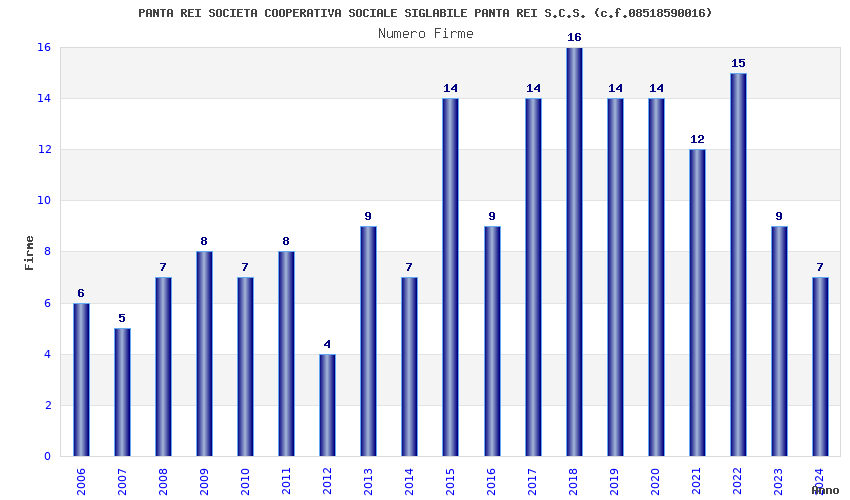 | Anno | Firme | Importi | Media | Naz. | Reg. | Prov. | Comu. |
