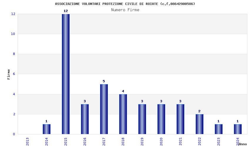 | Anno | Firme | Importi | Media | Naz. | Reg. | Prov. | Comu. |