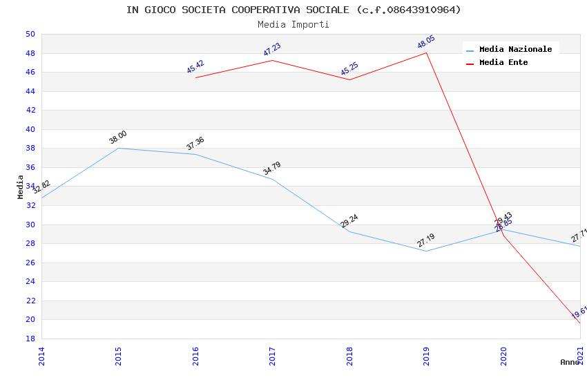 | Anno | Firme | Importi | Media | Naz. | Reg. | Prov. | Comu. |