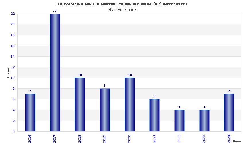 | Anno | Firme | Importi | Media | Naz. | Reg. | Prov. | Comu. |