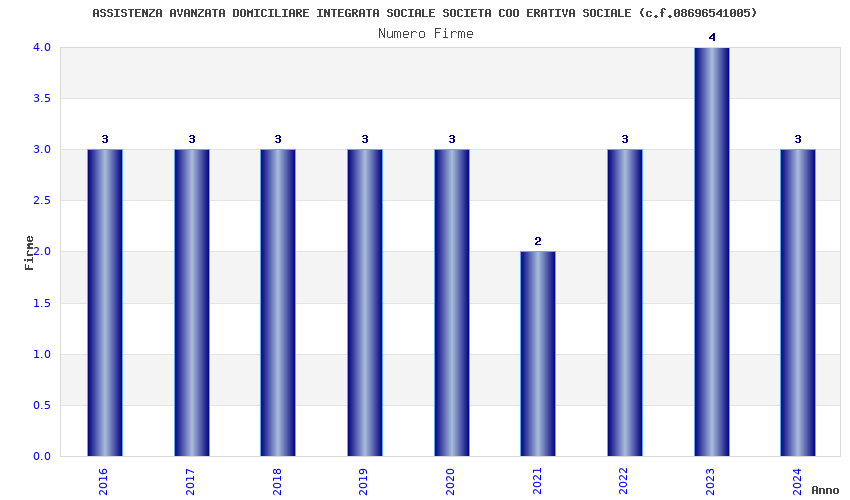 | Anno | Firme | Importi | Media | Naz. | Reg. | Prov. | Comu. |