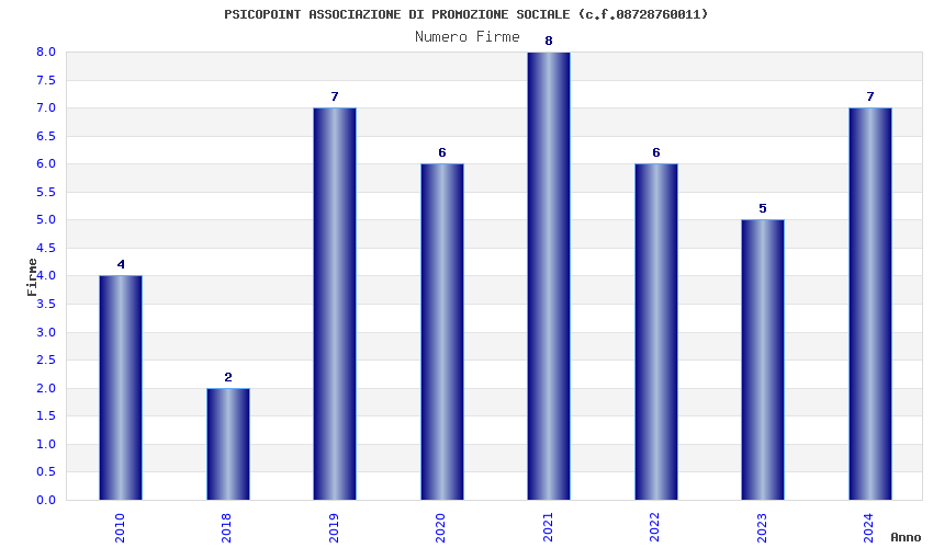 | Anno | Firme | Importi | Media | Naz. | Reg. | Prov. | Comu. |