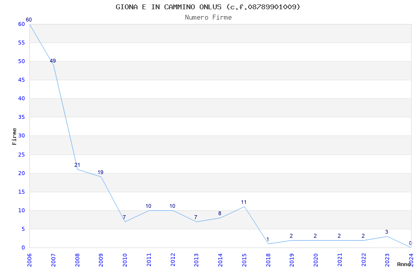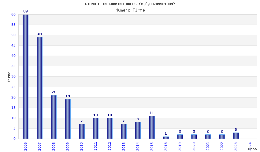 | Anno | Firme | Importi | Media | Naz. | Reg. | Prov. | Comu. |