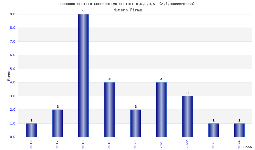 | Anno | Firme | Importi | Media | Naz. | Reg. | Prov. | Comu. |