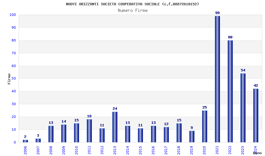 | Anno | Firme | Importi | Media | Naz. | Reg. | Prov. | Comu. |
