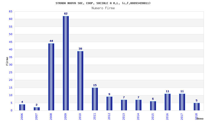 | Anno | Firme | Importi | Media | Naz. | Reg. | Prov. | Comu. |