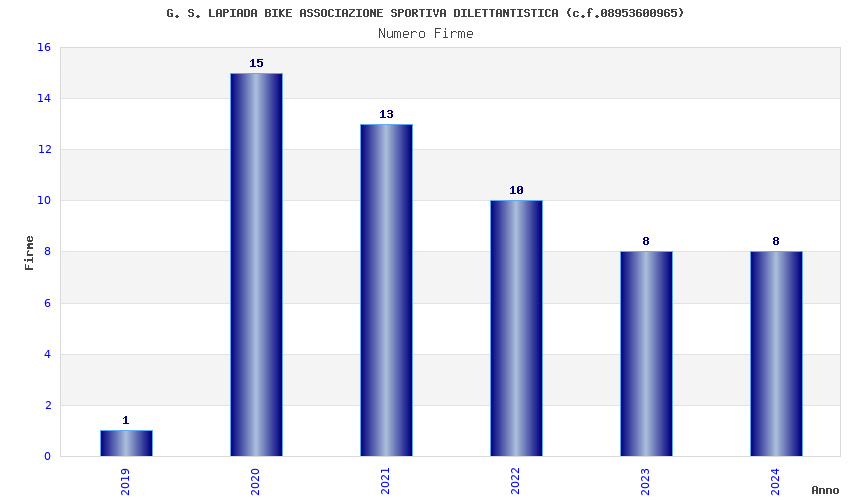 | Anno | Firme | Importi | Media | Naz. | Reg. | Prov. | Comu. |