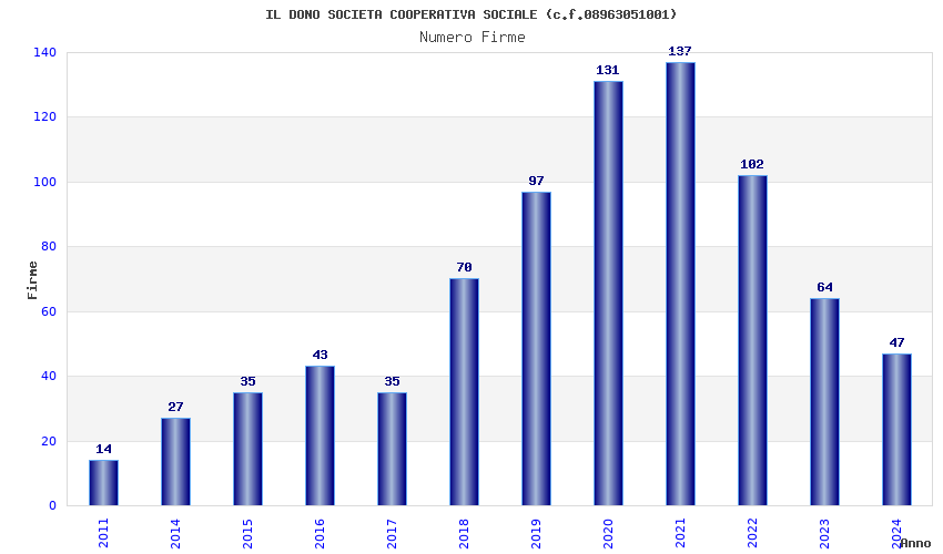 | 2021 | 137 | 3.690,05 | 26,93 | 14.644 | 1.636 | 1.406 | 2 |