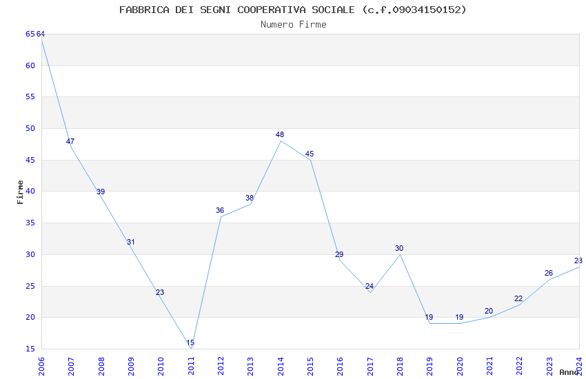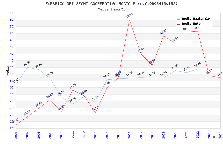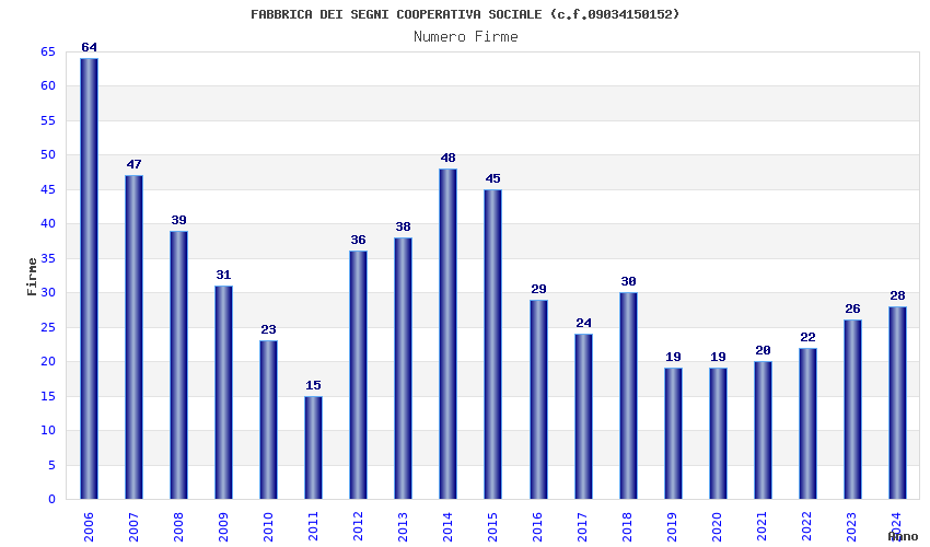 | Anno | Firme | Importi | Media | Naz. | Reg. | Prov. | Comu. |