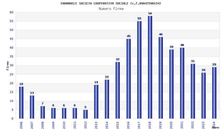 | 2018 | 58 | 1.684,71 | 29,05 | 26.396 | 5.851 | 122 | 7 |