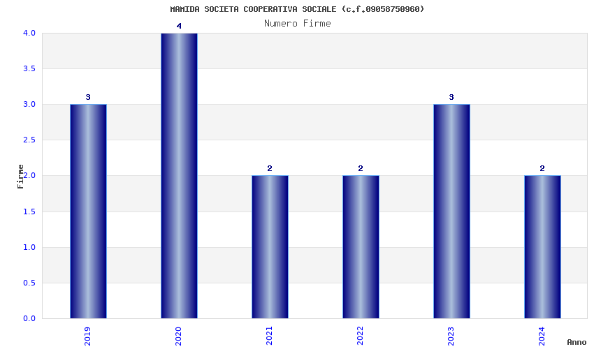| Anno | Firme | Importi | Media | Naz. | Reg. | Prov. | Comu. |