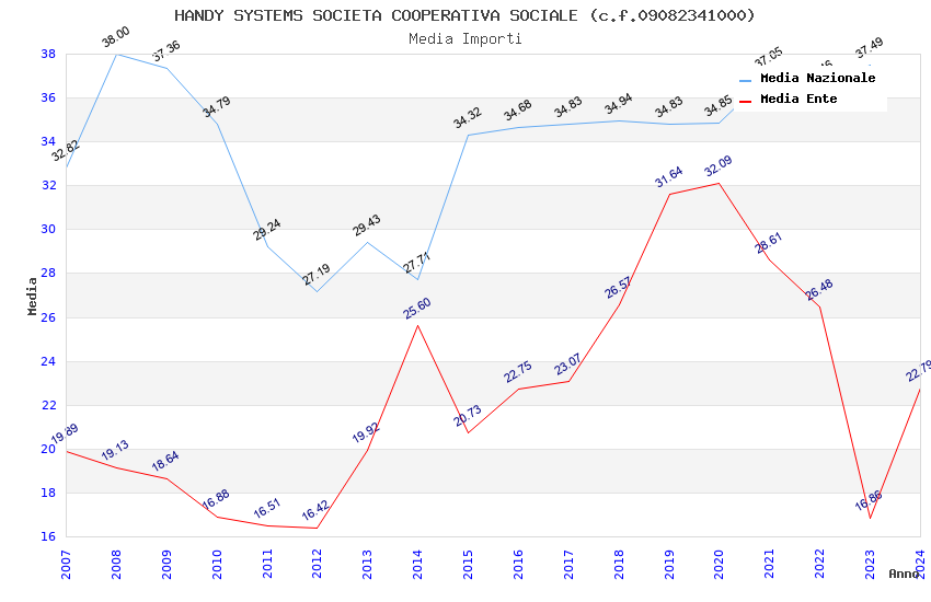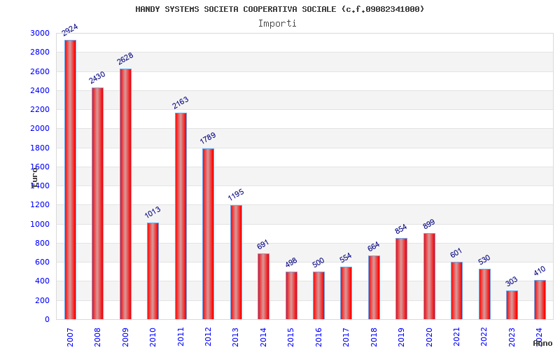 | Anno | Firme | Importi | Media | Naz. | Reg. | Prov. | Comu. |