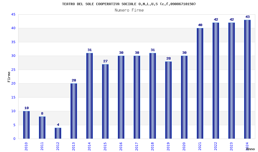 | Anno | Firme | Importi | Media | Naz. | Reg. | Prov. | Comu. |