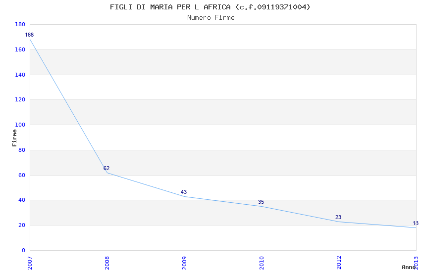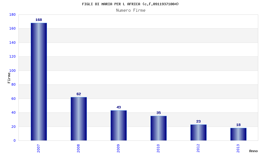 | Anno | Firme | Importi | Media | Naz. | Reg. | Prov. | Comu. |